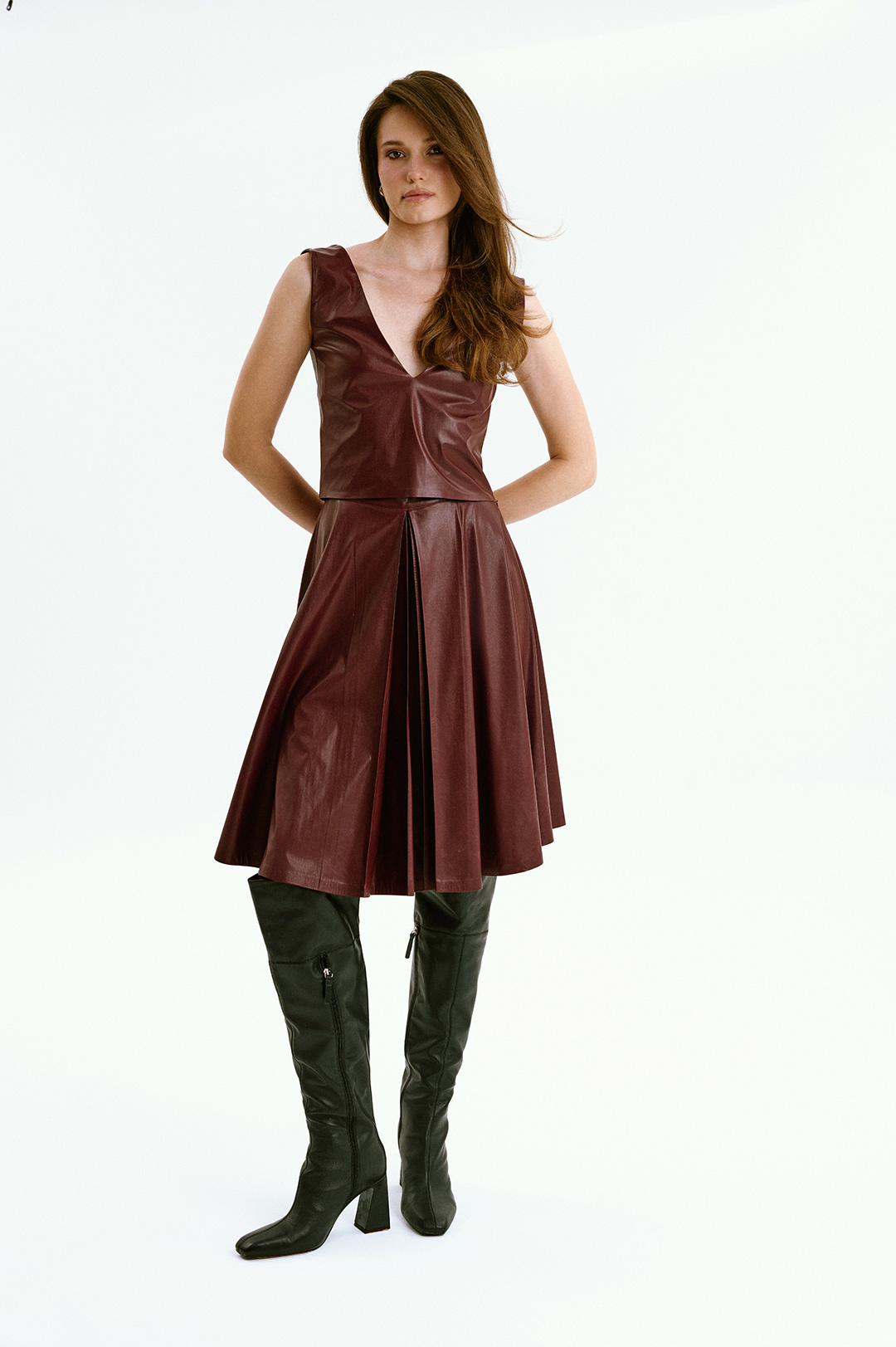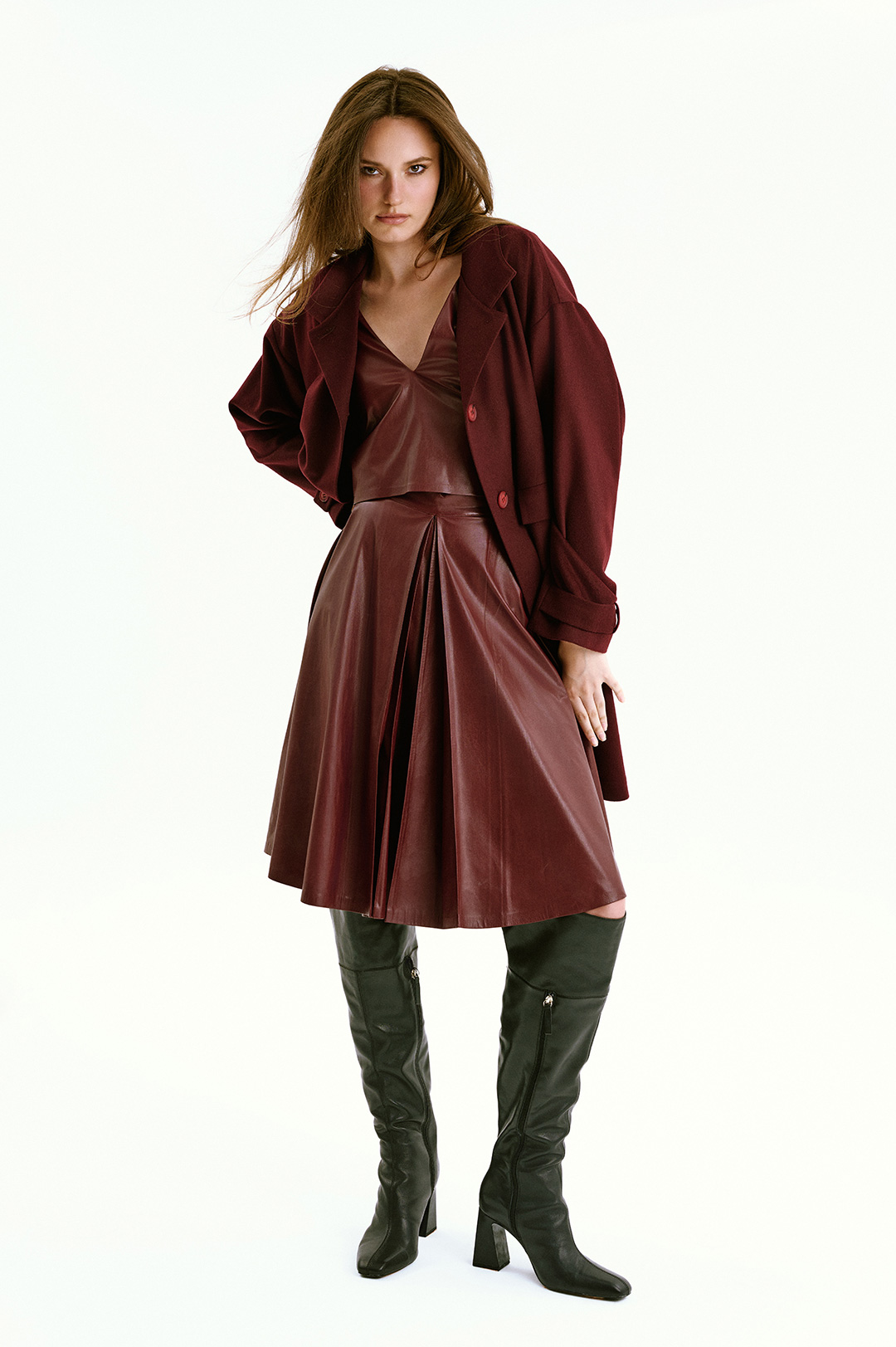 The dimensions of the model are: height: 180cm, chest: 84cm, waist: 61cm, hips: 90cm, she wears size S.