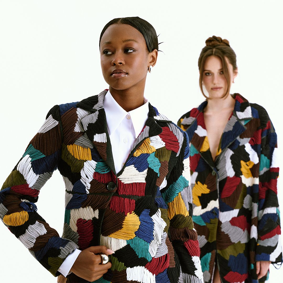 Tamamı kadın zanaatkârlar tarafından elde işlenen iplik aplikeleriyle tasarlanan bu blazer, markanın tasarım yaklaşımını güçlü bir şekilde yansıtır. Her bir renk geçişi ve doku katmanı, zaman ve ustalık gerektiren bir sürecin sonucudur.