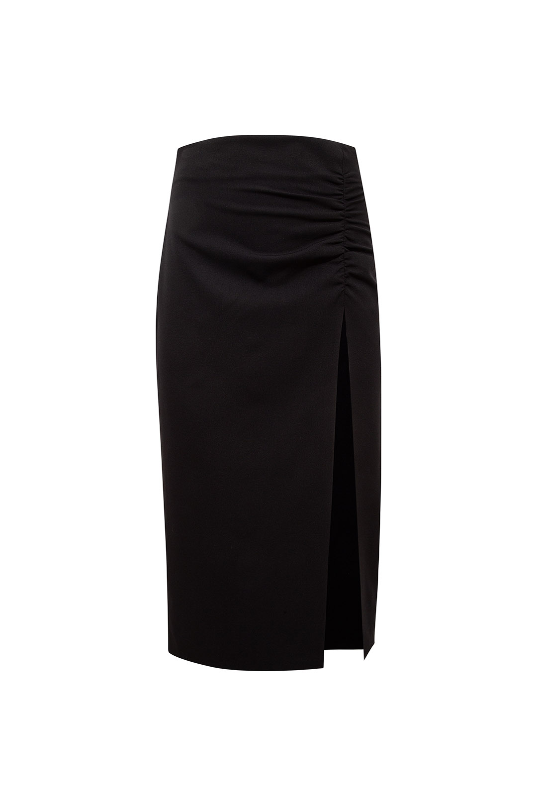 Siyah Büzgü Detaylı Derin Yırtmaçlı Kalem Etek
